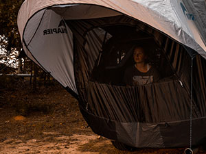 Indulge in the cozy comforts of your vehicle amidst the beauty of the outdoors. Enjoy access to a power source and retreat from unfriendly critters.