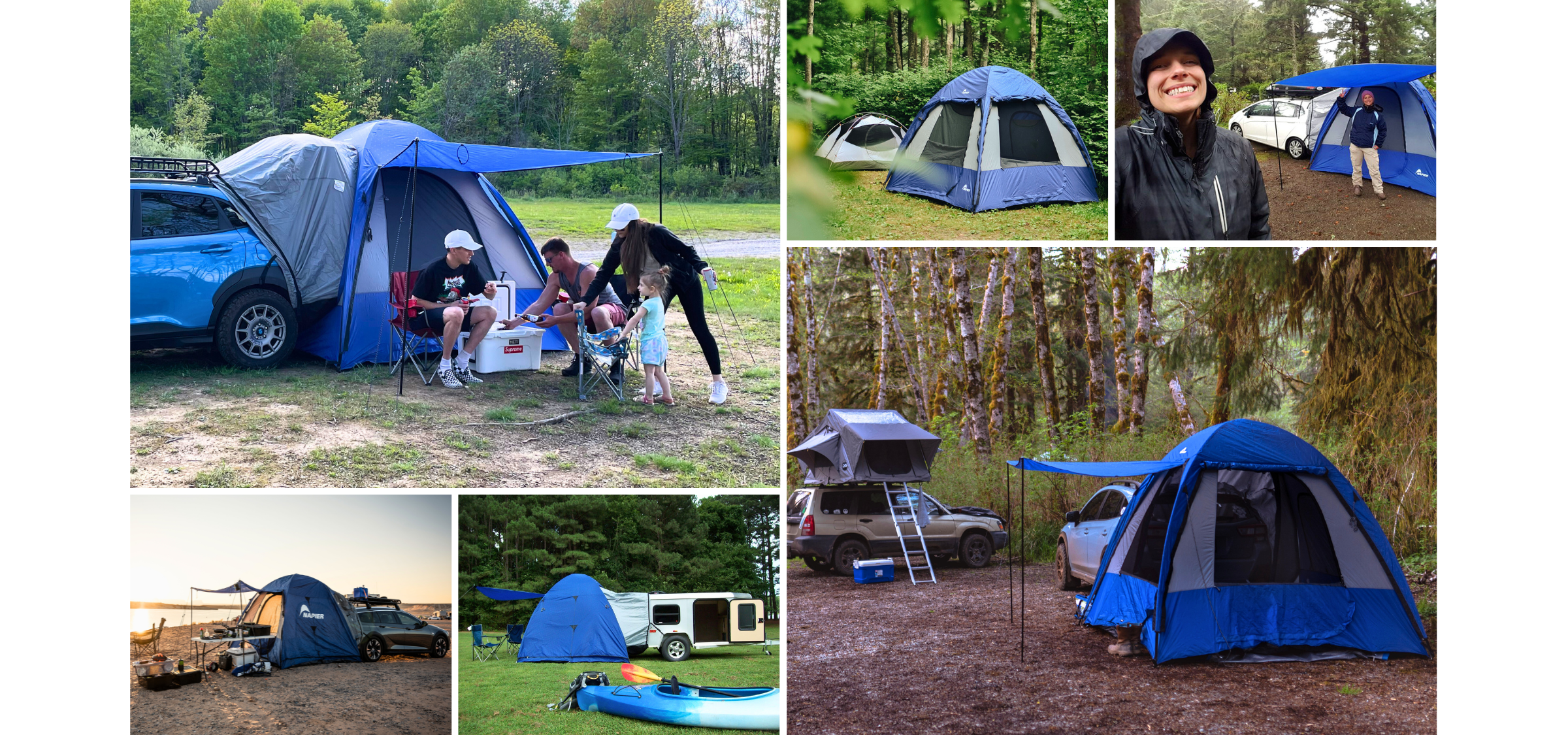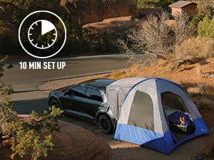 Two pole structure allows for a quick and hassle-free car camping set-up in under 10 minutes. Includes expandable carrying bag for easy storage.