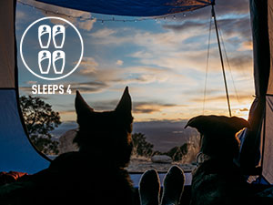 Full rainfly with taped seams and zippered storm flaps in windows and doors provide privacy and ultimate weather protection against the elements.