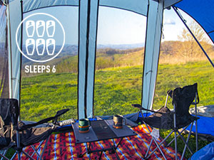 Large 10’ x 10’ ground tent with over 7' of headroom comfortably sleeps up to 6 people, making it perfect for families or group camping trips.